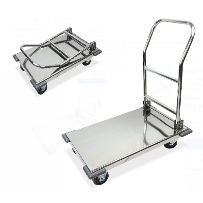 CARRO DE PLATAFORMA INOX CON ASA RETRACTIL 490x760x840mm 300 KG