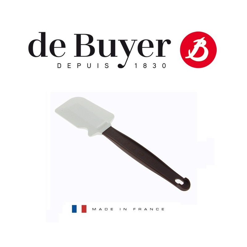 Práctico, permite raspar recipientes y zonas inaccesibles, además de trasladar un plato. Un diseño de una sola pieza, la hoja y el mango son inseparables; "maryse" está diseñado para un uso profesional intensivo.