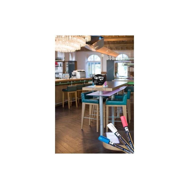 Caballete de sobremesa. Dim: 25x33m. Material: Resina de melamina. Material base: Madera. Forma: Plato. Pizarras de Madera para Mesa Formas recortadas con precisión en una superficie de escritura de doble cara, fuerte pero flexible, con una base de madera dura.