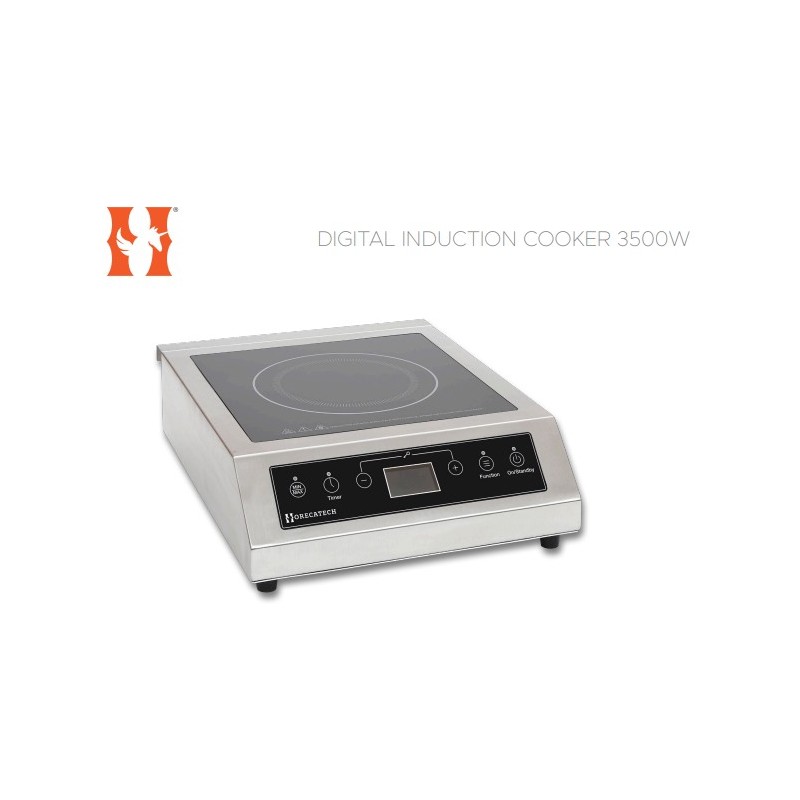 Patas regulables. Pantalla táctil impermeable. Apagado automático después de 120 min sin utilizar. Cuerpo de acero inoxidable. Características técnicas: Potencia: 17, de 100W a 3500W. Temperatura: de 35°C a 240°C (step 5°C). Diametro de olla: Min 14 cm - Max 32 cm.