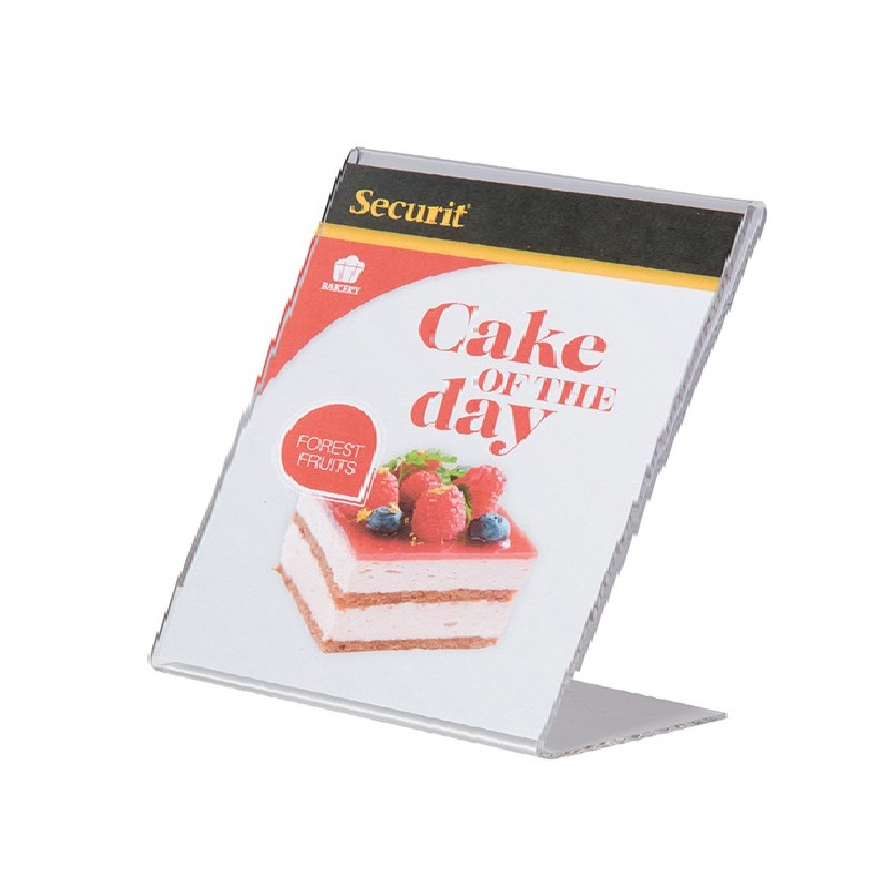 PORTA-CARTEL SOBREMESA TRANSPARENTE A8 FORMA L