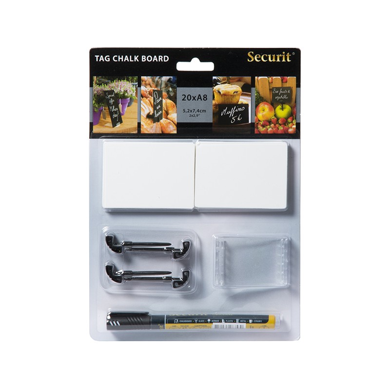 PACK 20 PIZARRAS BLANCAS A8 + 1 ROTULADOR TIZA NEGRO