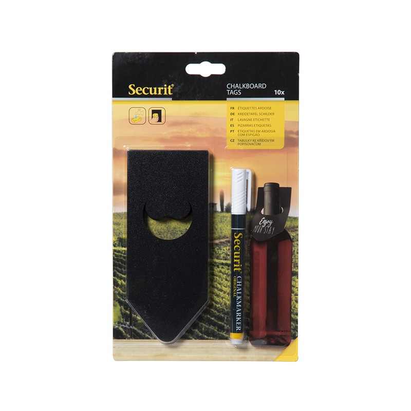 ETIQUETA PIZARRA PARA BOTELLA (10 ud) + 1 ROTULADOR TIZA