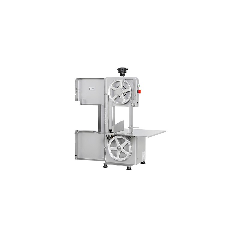 Totalmente en acero inoxidable 18/10. Poleas en aluminio anodizado. Diámetro polea: 230 mm Longitud cinta: 1750 mm Altura de Corte: 230 mm Espesor de Corte: 200 mm Motor Trifásicos de 1.25 / 0,92 kW 230-400V Motor Monofásicos de 1.5 HP / 1,10 kW 230V
