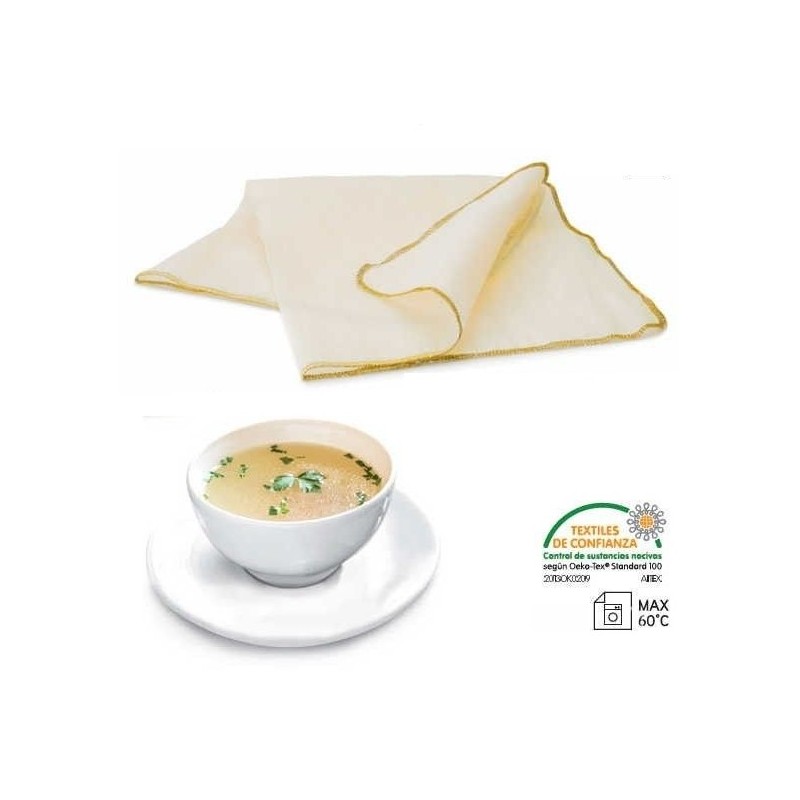 La tela estameña de algodón es perfecta para colar sopas, salsas, aderezar carnes y aves... de forma fácil y natural. Se debe lavar antes del primer uso.El color beige es debido al color natural del algodón.No contiene lejia ni otros aditivos. Paso 358mc. Lavado lavavajillas max. 60ºC.